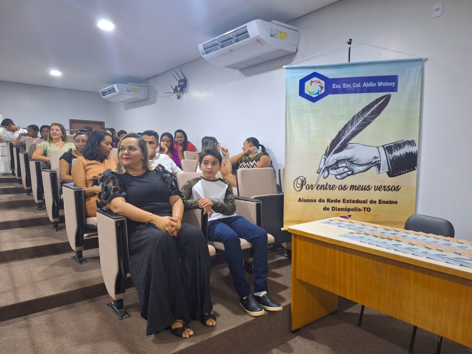 Como resultado do projeto Palavras em Movimento, nessa segunda-feira, 2, os estudantes do Ensino Médio e Fundamental da Escola Estadual Coronel Abílio Wolney, de Dianópolis, lançaram o livro de poesia “Por Entre Meus Versos”. O evento ocorreu na Câmara Municipal de Dianópolis.
