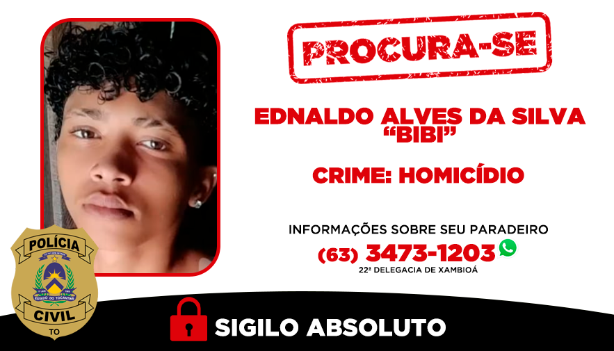 Ednaldo Alves da Silva, conhecido como “Bibi”, pode acionar a Polícia Civil pelo telefone/WhatsApp (63) 3473-1203 – DICOM SSP-TO file_download