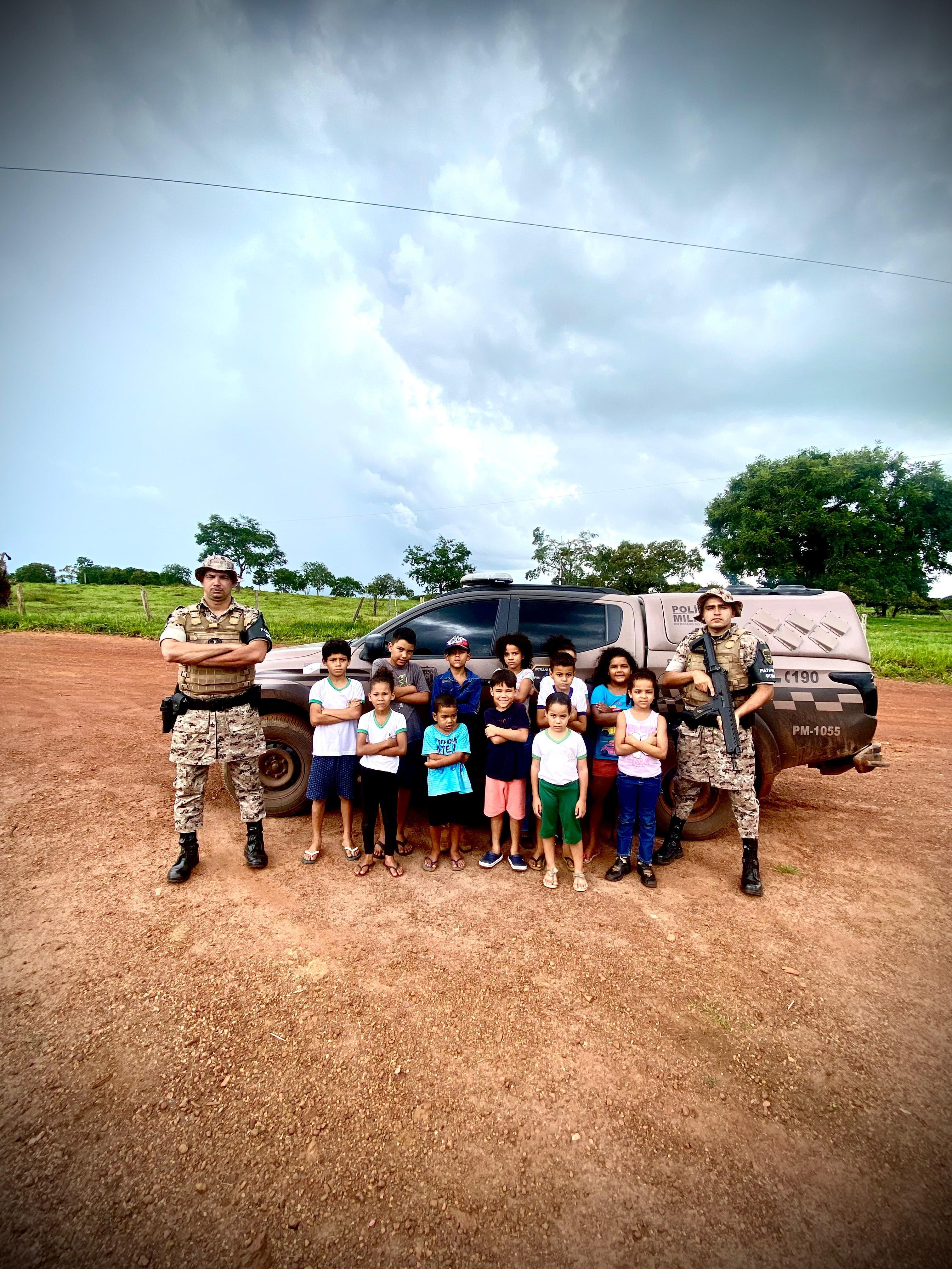 Policiais da Patrulha Rural do 8º BPM interagindo com crianças de povoado local – Ascom 8º BPM file_download