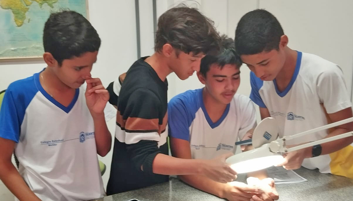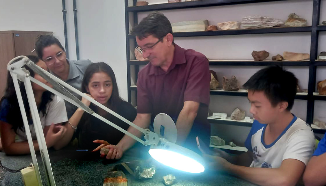 Estudantes da Escola Welder Maria de Abreu Sales examinam os diversos tipos de rochas – Divulgação/Seduc/Governo do Tocantins file_download