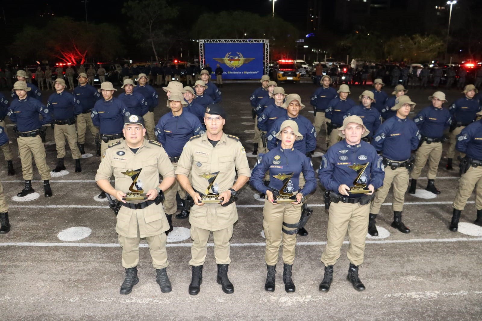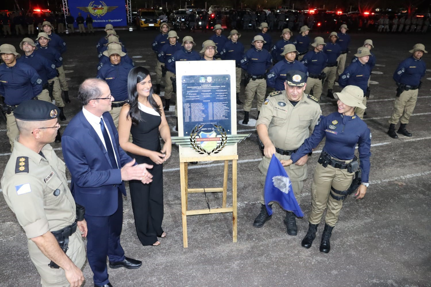 Na noite desta terça-feira, 17, a Polícia Militar do Tocantins realizou a solenidade de formatura do V Curso de Policiamento de Trânsito Rodoviário (V CPTR), turma Soldado Railan Sousa da Silva. O evento que aconteceu no pátio do Quartel do Comando-Geral (QCG), em Palmas, contou com a presença da primeira dama do Tocantins, Secretaria Extraordinária de Participações Sociais e madrinha da turma, Karynne Sotero, do Chefe do Estado-Maior da PMTO, Coronel PM Cláudio Thomaz Coelho de Souza e outras autoridades militares e civis, convidados e familiares dos formandos.