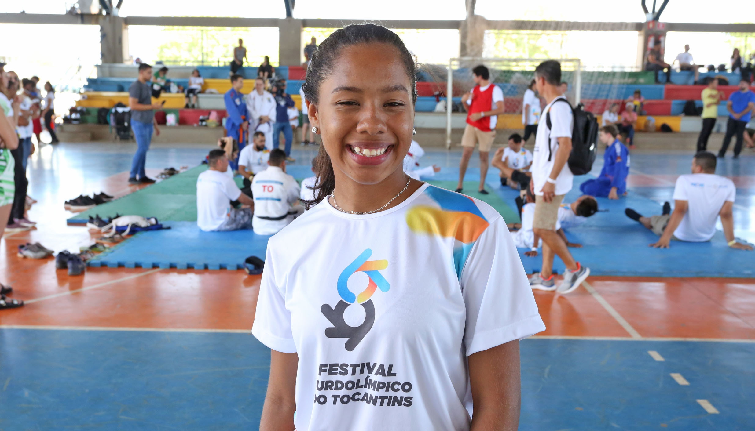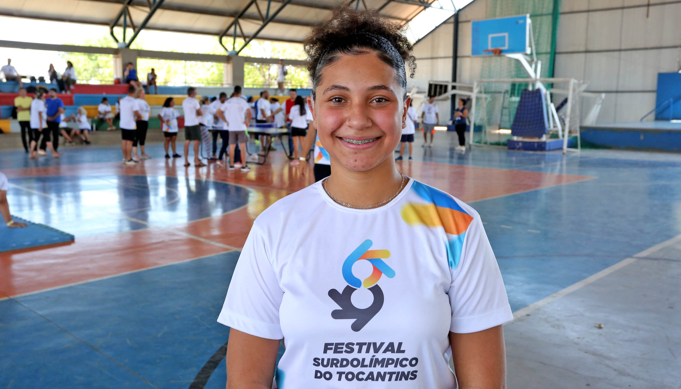 Ahgata Cristina, estudante da Escola Bilíngue de Surdos, ressaltou seu amor ao esporte e felicidade por participar do Festival – Henio José Ferreira/Governo do Tocantins file_download
