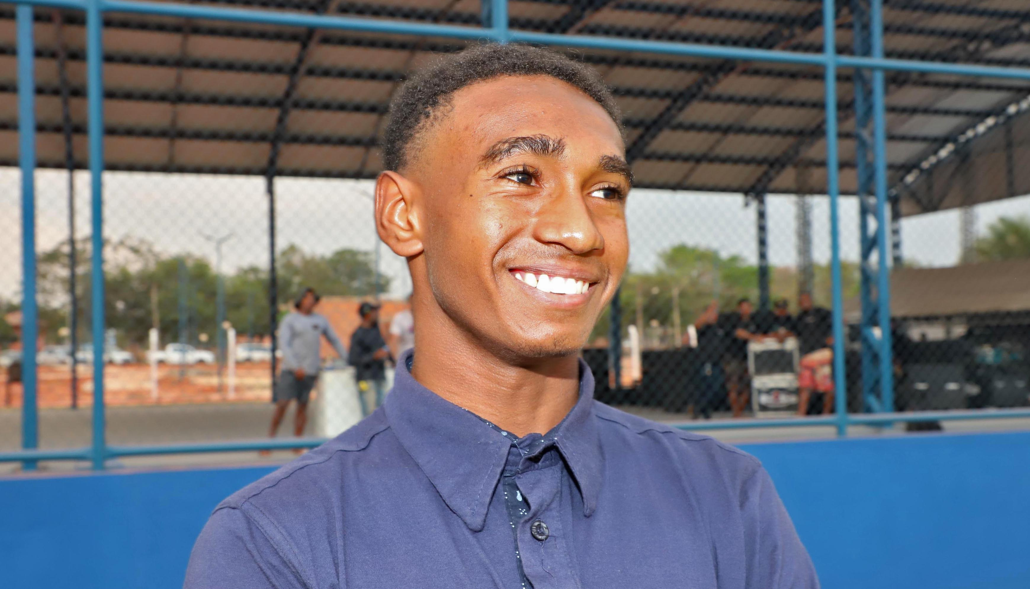 Vitor Charles Santos, de 15 anos, feliz com a nova quadra do Centro Poliesportivo – Esequias Araujo/Governo do Tocantins file_download