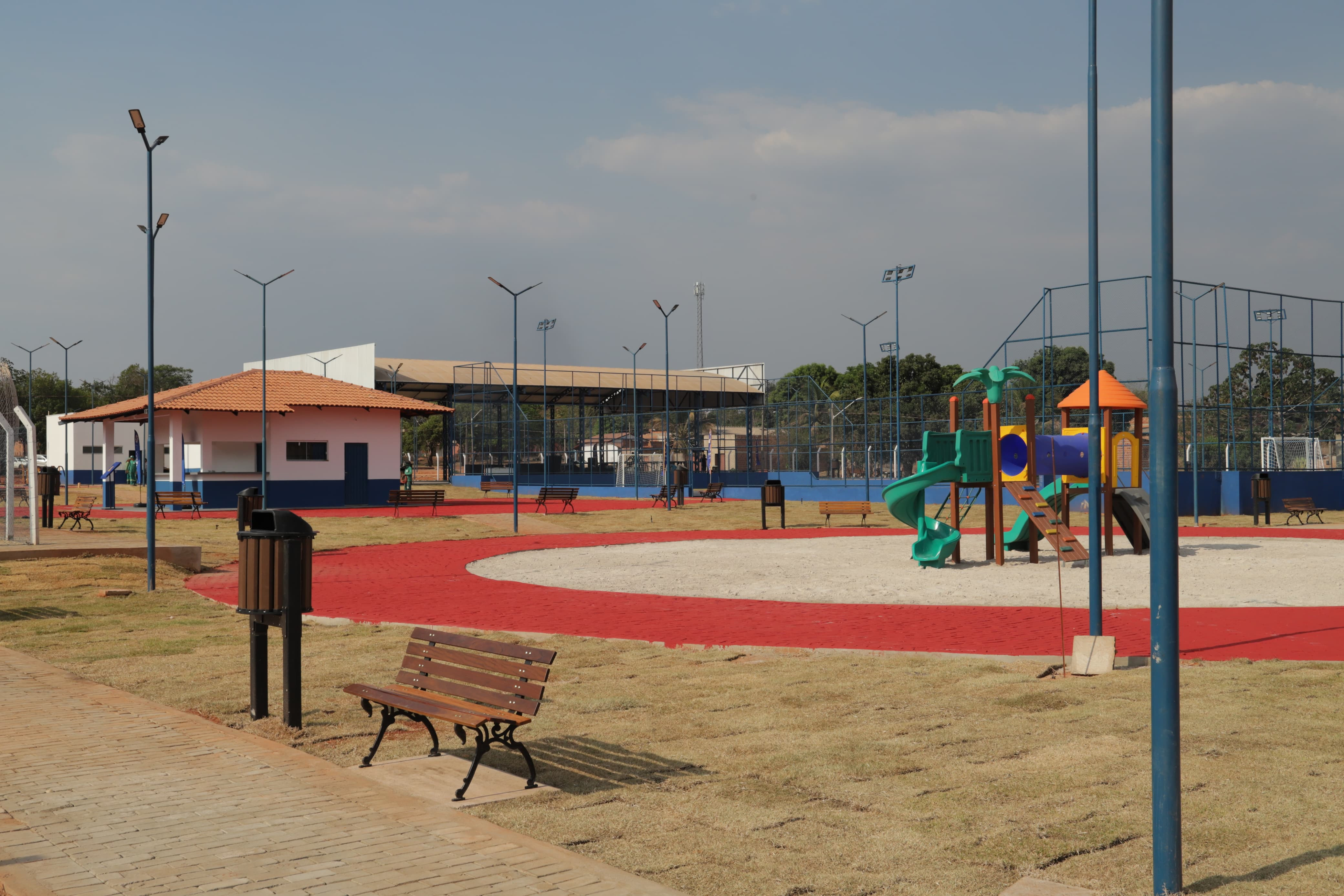Centro Poliesportivo em Mateiros conta com uma academia ao ar livre, playground, ciclovia, quadra de futsal, quadra de areia, banheiros com vestiários, lanchonete e uma feira coberta – Emerson Silva / Governo do Tocantins file_download