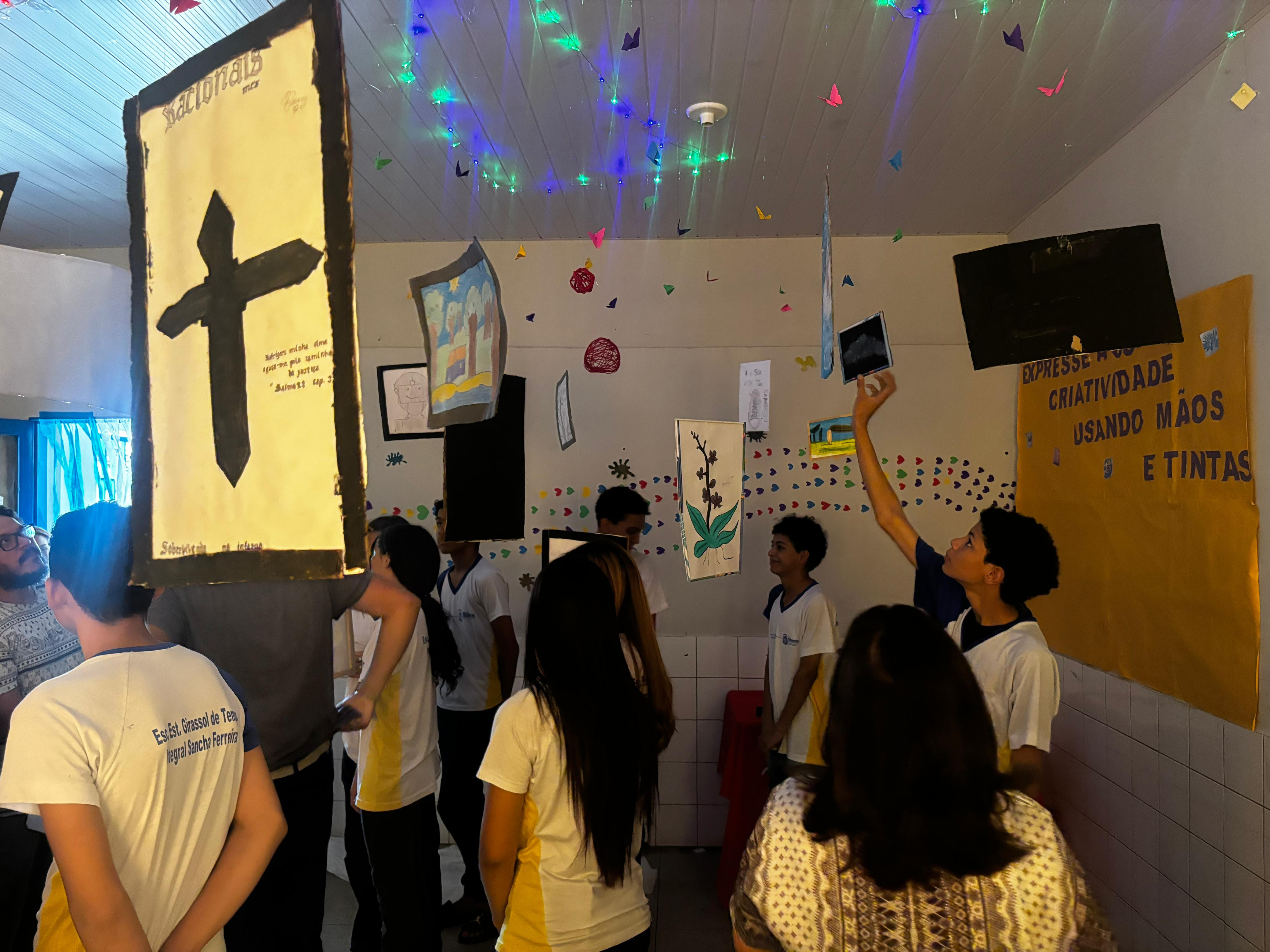 O intuito é oportunizar a expressão de vozes criativas e críticas, por meio de diversas linguagens artísticas. Participaram da ação as turmas do 6º ao 9º ano, com apresentações de pinturas, dança, cinema e música.