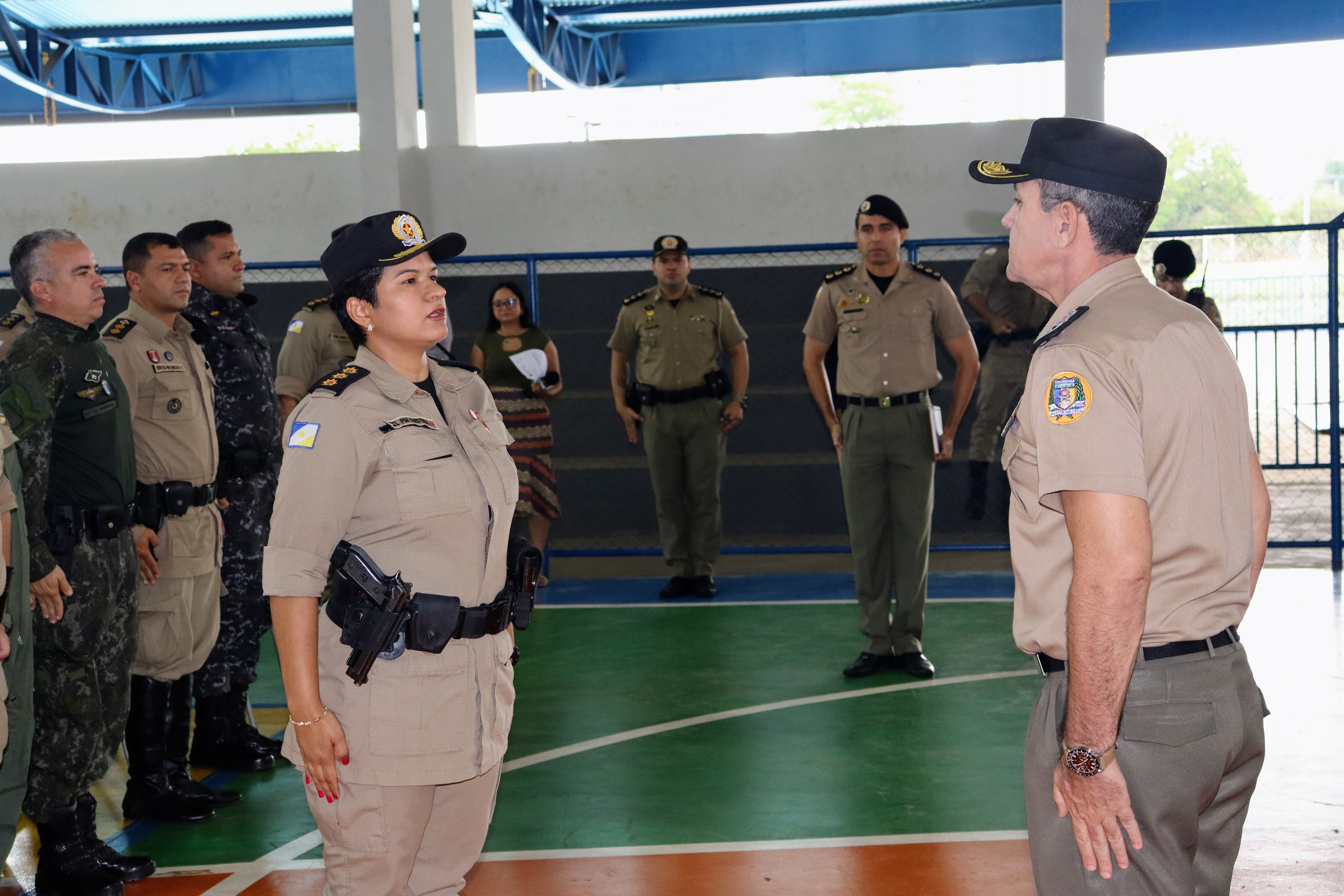 Comandante do CPC, Coronel Cristina apresenta tropa ao Comandante-Geral, Coronel Barbosa – Felipe Cruz/Governo do Tocantins file_download