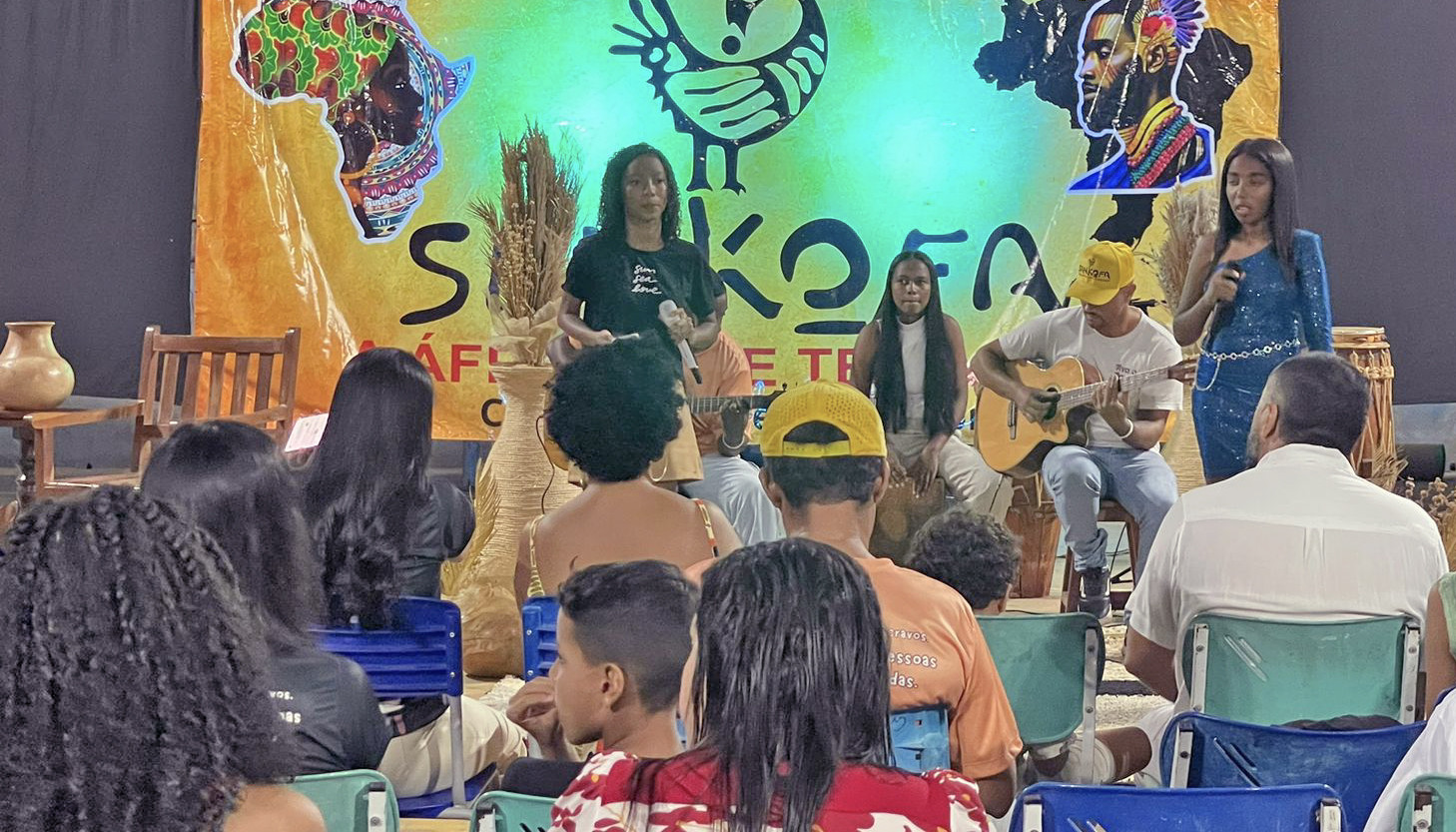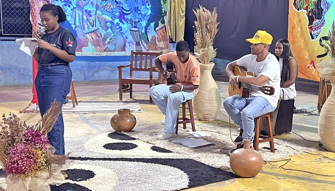 Neste mês, em que se celebra o Dia da Consciência Negra, 20 de novembro, os estudantes prepararam apresentações especiais para vários dias. E, para isso, a escola foi ornamentada com ilustrações, frases e plantas para promover um ambiente mais alegre. E entre as ações está a Noite do Legado, com rodas de samba, teatro e ritmo da favela e, agora, a Noite do Axé, com danças, músicas e foco na cultura africana.
