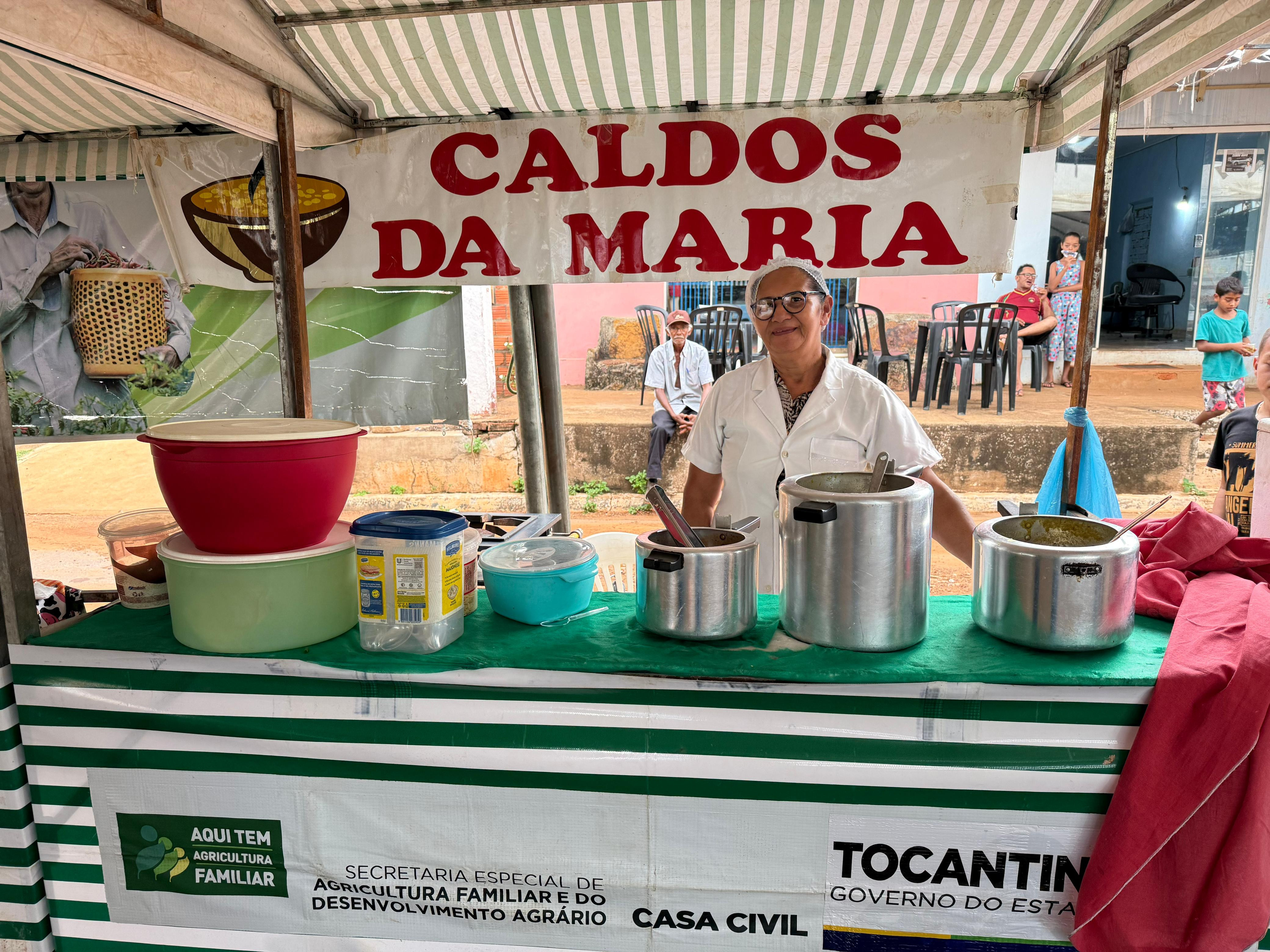 Caldos de frango, carne, cachorro quente são encontrados na feira da colheita em Santa Tereza. – Amanda Oliveira/Governo do Estado file_download